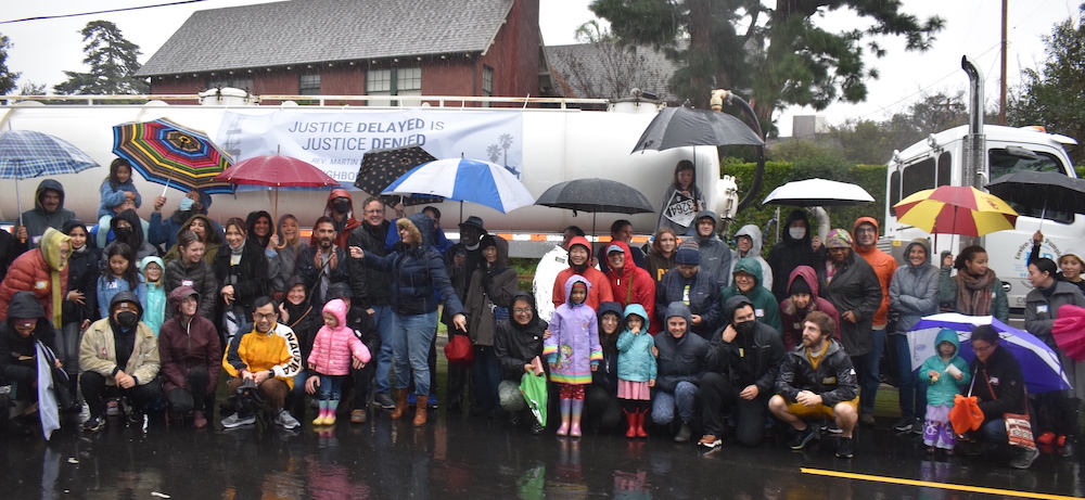 GreenFaith partnered with STAND LA to hold a teach-in on January 14, 2023, to build community power and share about the dangers of neighborhood oil and gas drilling. The teach-in was held on a street in front of the Murphy Drill Site and was attended by over 70 people despite the pouring rain. The event was an opportunity for frontline communities to connect with faith communities and organizations, families, and young adults. We heard stories from nearby residents, researchers, and scientists about the number of safety violations and health impacts at the drill site.